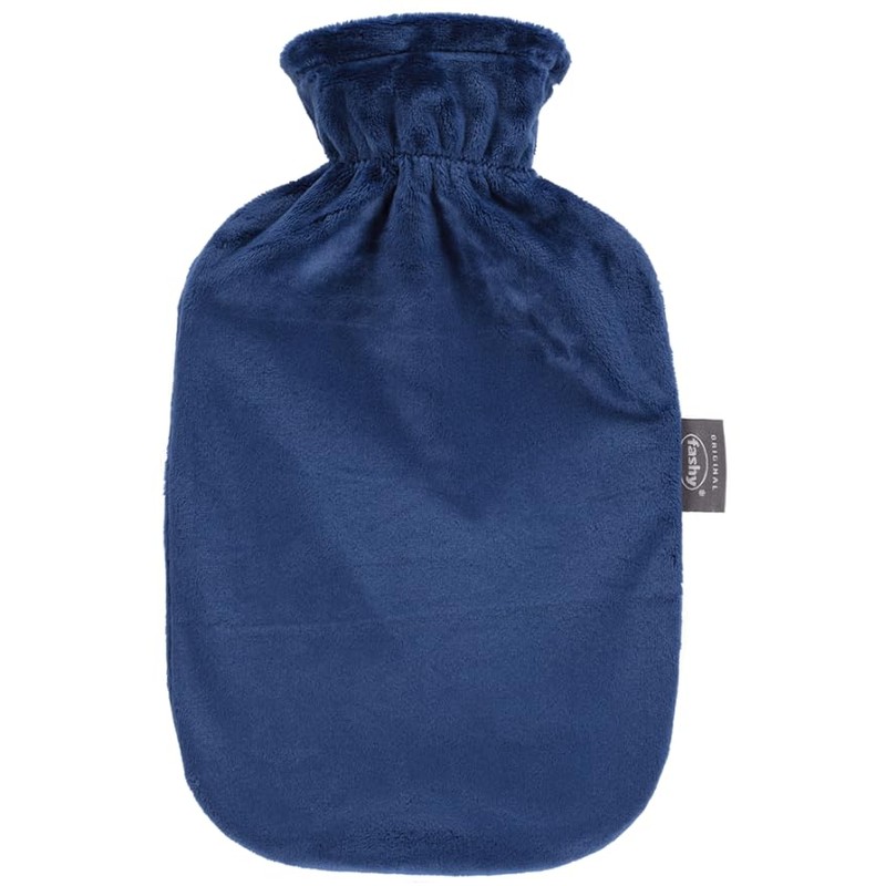 Fashy Hot Water Bottle with Fleece Cover, Navy, 2 L