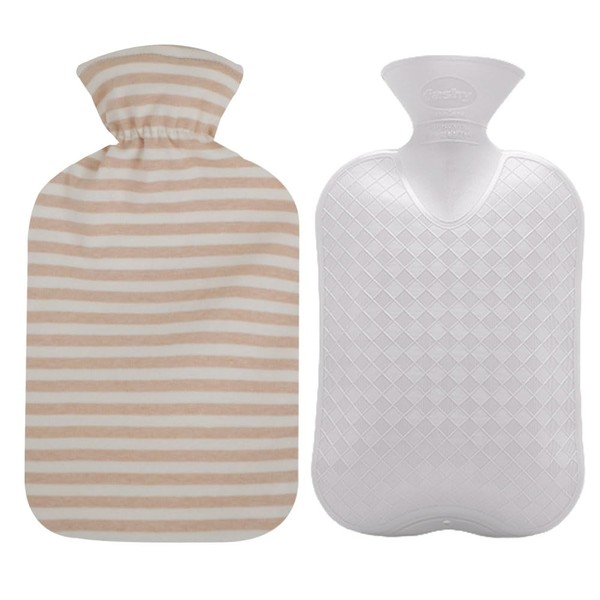 Fashy Hot Water Bottle with Ivory Soft Cotton Cover (67oz / 2L) – Made in Germany