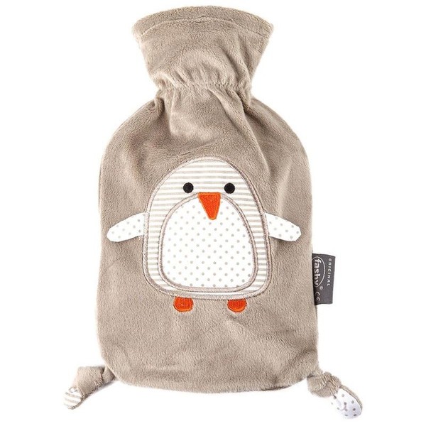 Fashy "Pia" 35720.4 Hot water bottle / children's penguin hot water bottle with cuddly soft fleece cover made of 100% polyester, robust and durable, 0.8 litres
