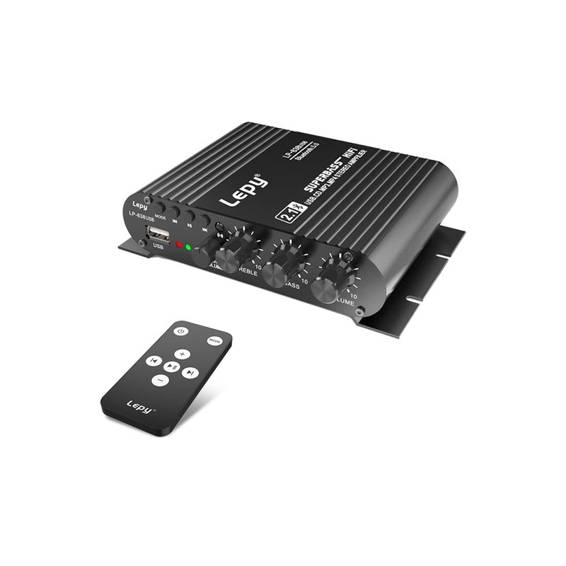 Fasizi LP-838USB Bluetooth 5.0 Amplifier 2.1 3 Channels Support Super Bass Music Playback without Data Loss USB with Remote Control Digital Amplifier with 3A Power Supply