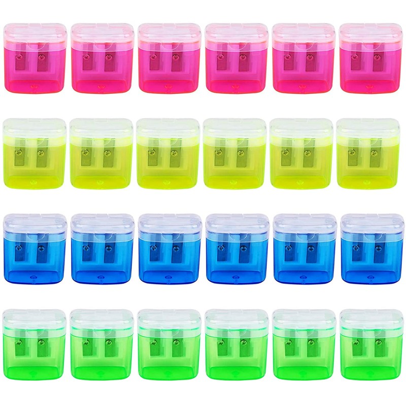- The package contains 24 pieces pencil sharpeners in 4 different colours. These colourful pencil sharpeners are a great gift for children for many occasions!
