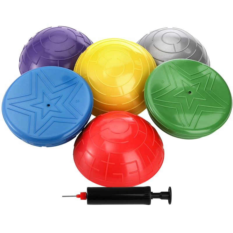 Fasmov 6 Pack Balance Pod, Balance Trainer Dots for Squat Touch Downs, Core Body Balancing, Inflatable Stepping Pads, 1 Hand Pump