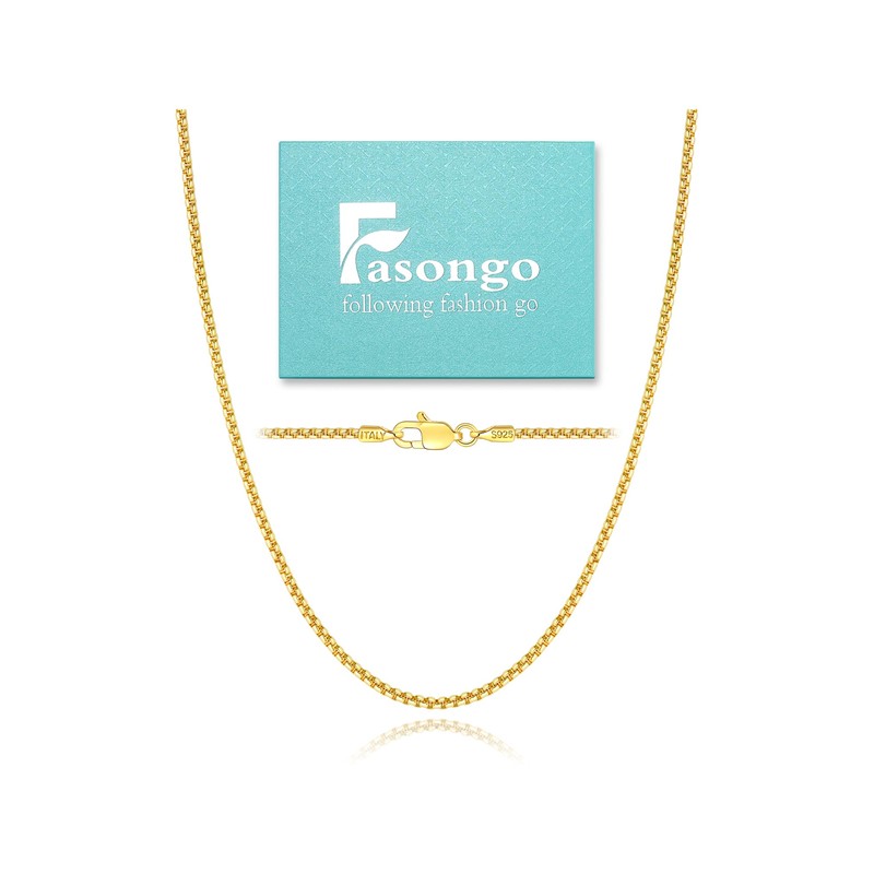 Fasongo Soild 18K Over Gold Chain Necklace for Women Men, 2.0mm Gold Box Chain Gold Chain for Women, Dainty & Sturdy Women's Chain Necklace 24 Inches, 2.0mm Yellow Gold