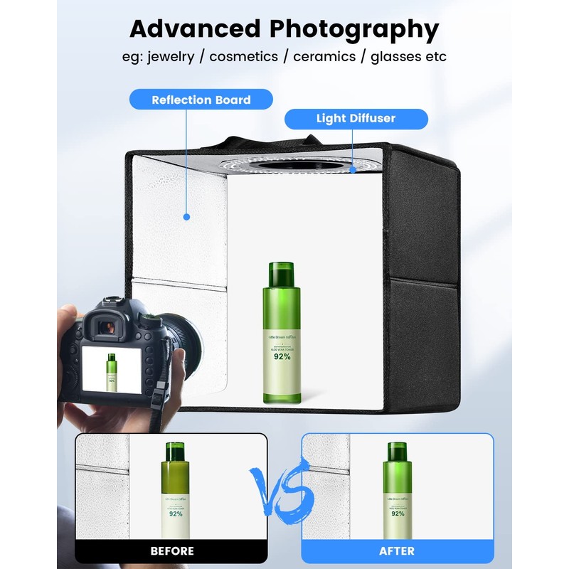 - Multi-angle Shooting: Multiple openings enable you to choose any photo shooting position for getting more perfect product features and beauty.