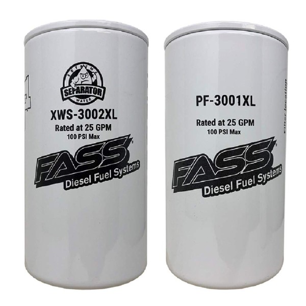 Perfect for the shop or keeping your garage stocked, each FASS Fuel Filter Pack contains one (1) (XWS-3002XL) Extreme Water Separator and one (1) (PF-3001XL) Particulate Filter! Designed with convenience in mind, our new filter packs make it easy to maintain a FASS Fuel System!