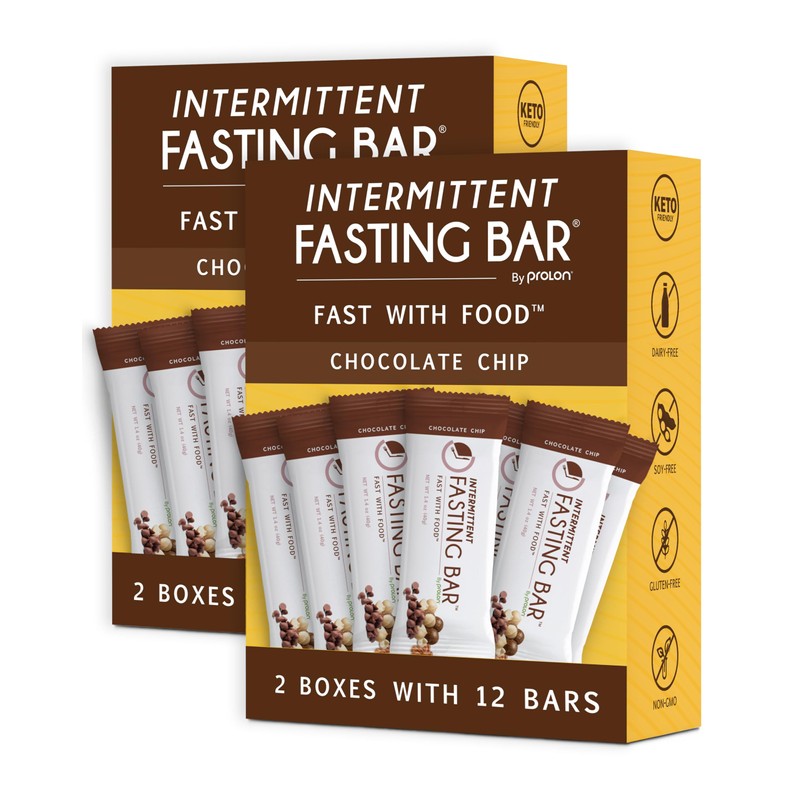 Fast Bar, Chocolate Chip | Gluten Free, Plant Based Protein Bar For Intermittent Fasting (24 Count Box)