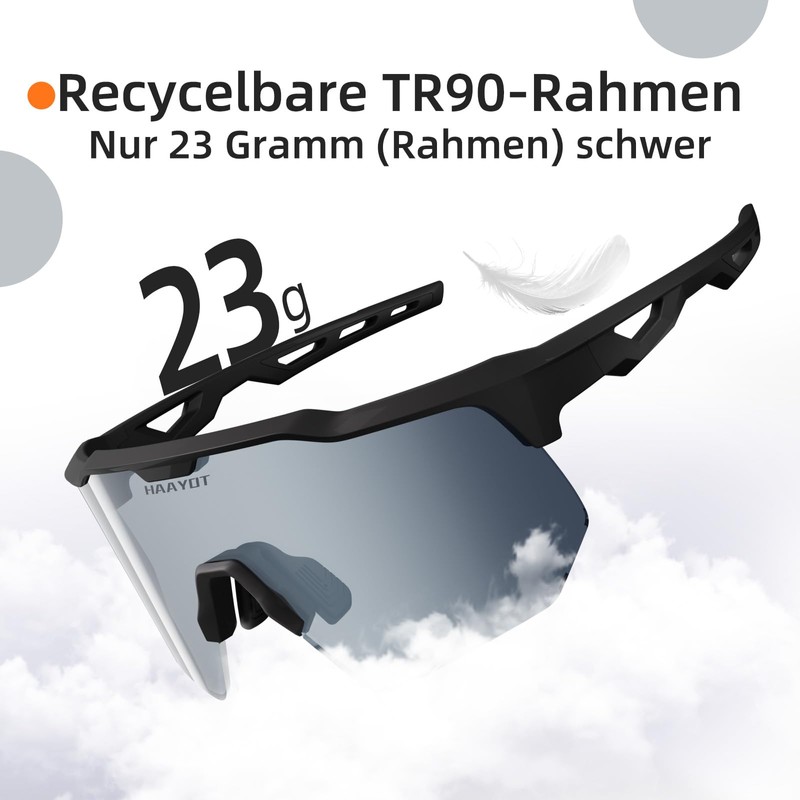- 5 interchangeable lenses for any situation: with our cycling glasses you get 5 different lenses, which are quick and easy to replace. Whether you are out in sunshine, cloudy weather or at dusk, with our glasses you are always optimally protected.