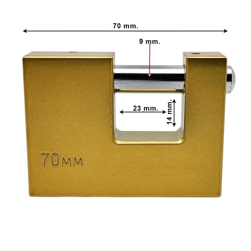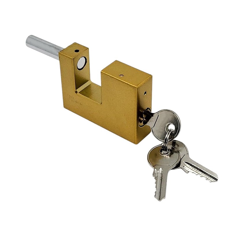 FAST WORLD SHOPPING 3 Keys Brass Shackle Padlock with Shackle 9mm Security for Motorcycle Roller Shutter Gate Garage High Protection Length 70mm