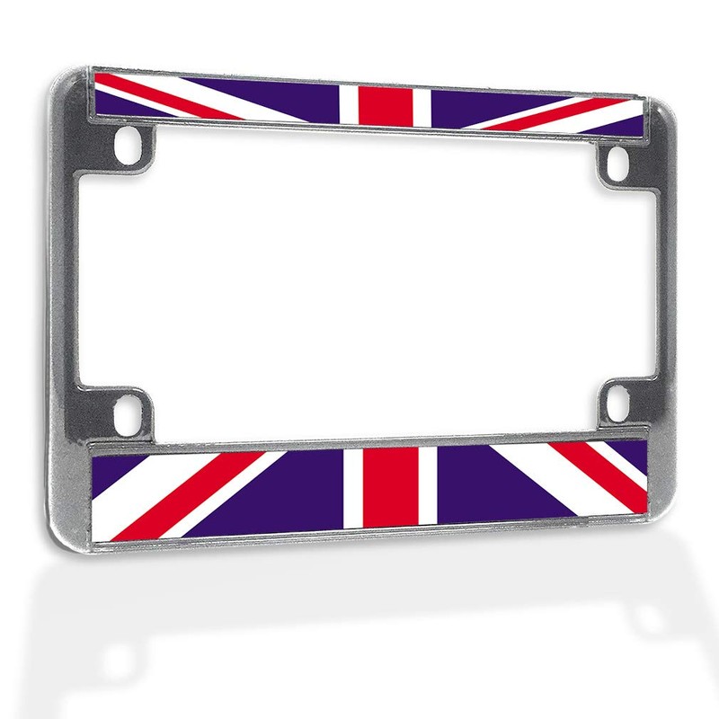 Metal Insert Bike License Plate Frame British Flag Divided Weatherproof Motorcycle Accessories Chrome 4 Holes Solid Insert
