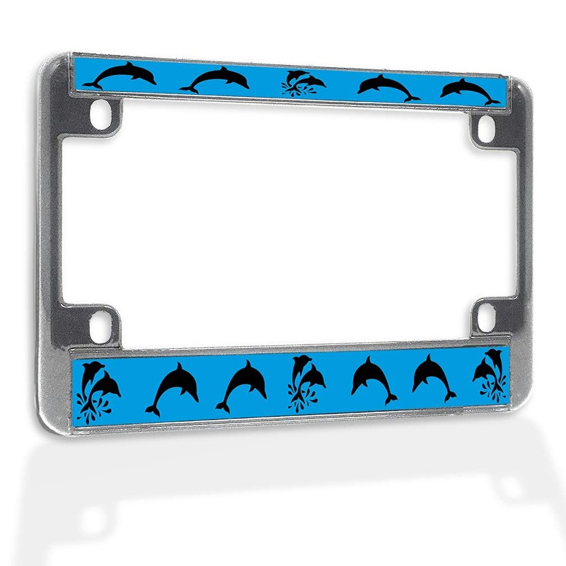 Fastasticdeals Metal Insert Bike License Plate Frame Dolphins Silhouette Ocean Beach Weatherproof Motorcycle Accessories Chrome 4 Holes Solid Insert