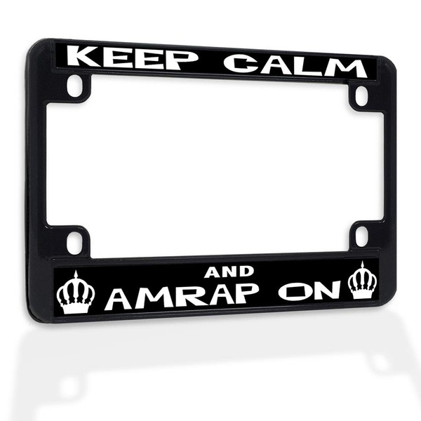 Fastasticdeals Metal Insert Bike License Plate Frame Keep Calm and AMRAP on Workout Weatherproof Motorcycle Accessories Black 4 Holes Solid Insert