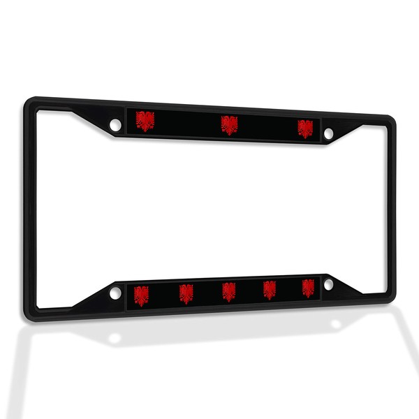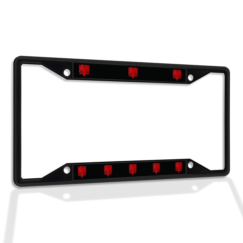 Fastasticdeals Metal Insert License Plate Frame Albanian Eagle Weatherproof Car Accessories Black 4 Holes Solid Insert