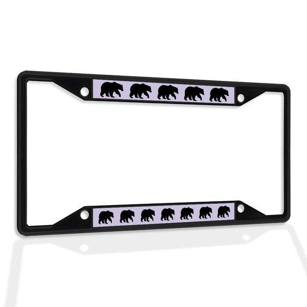 Fastasticdeals Metal Insert License Plate Frame Bear Silhouette Weatherproof Car Accessories Black 4 Holes Solid Insert