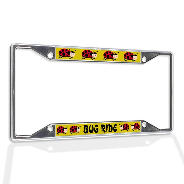 Fastasticdeals Metal Insert License Plate Frame Bugs Ride Ladybug Weatherproof Car Accessories Chrome 4 Holes Solid Insert