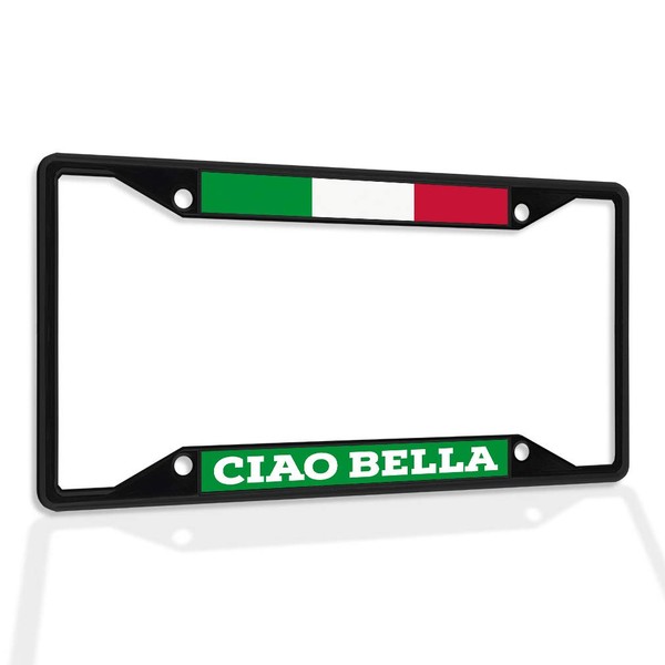 Fastasticdeals Metal Insert License Plate Frame Ciao Bella with Italian Flag E Weatherproof Car Accessories Black 4 Holes Solid Insert