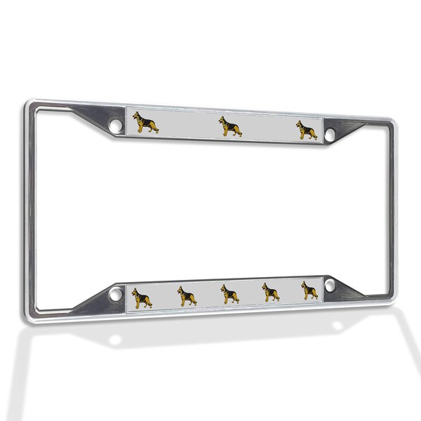 Fastasticdeals Metal Insert License Plate Frame German Shepherd Dog A Weatherproof Car Accessories Chrome 4 Holes Solid Insert