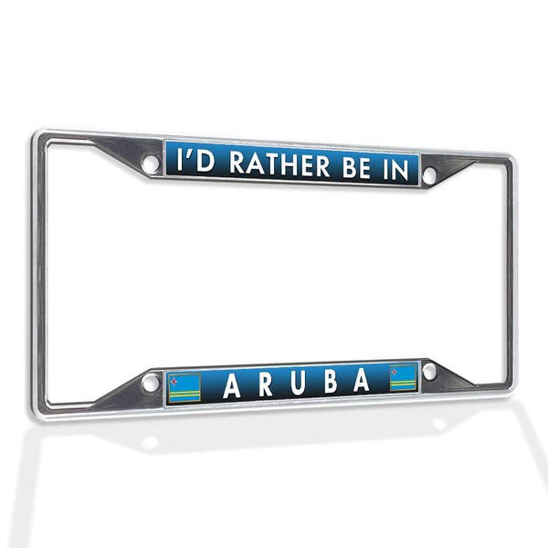 Fastasticdeals Metal Insert License Plate Frame I'd Rather Be in Aruba Weatherproof Car Accessories Chrome 4 Holes Solid Insert