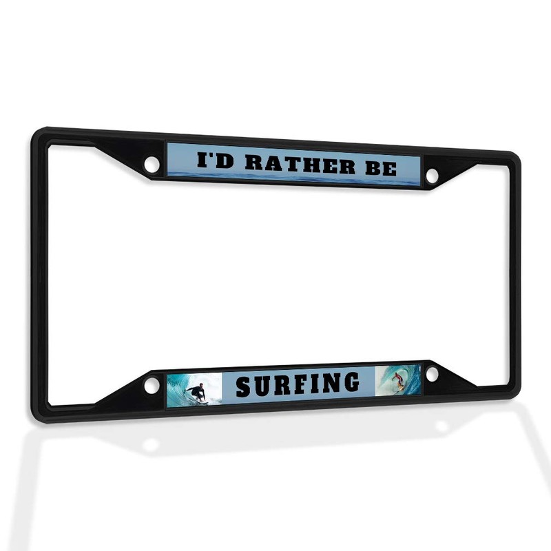 Fastasticdeals Metal Insert License Plate Frame I'd Rather Be Surfing B Weatherproof Car Accessories Black 4 Holes Solid Insert