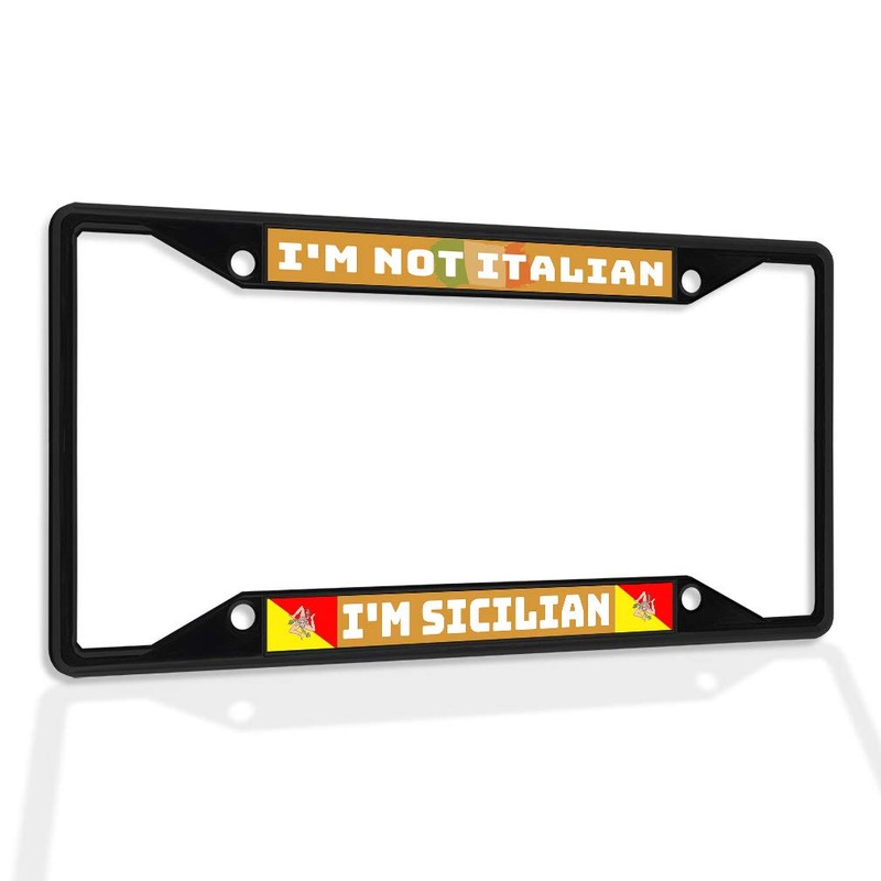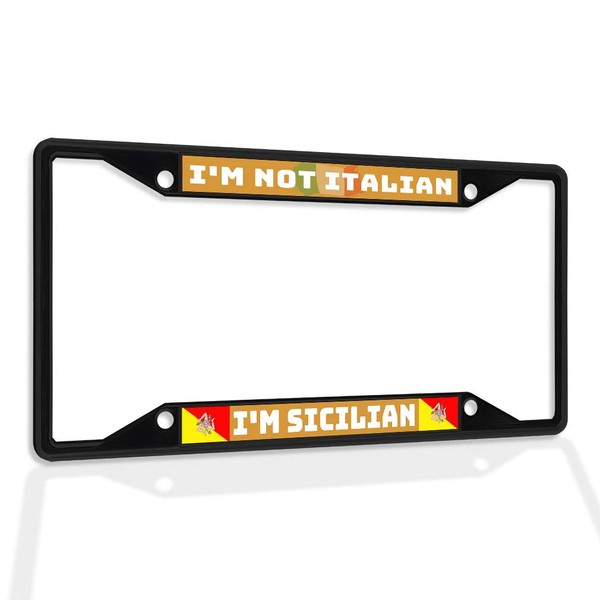 Fastasticdeals Metal Insert License Plate Frame I'm Not Italian Sicilian Weatherproof Car Accessories Black 4 Holes Solid Insert