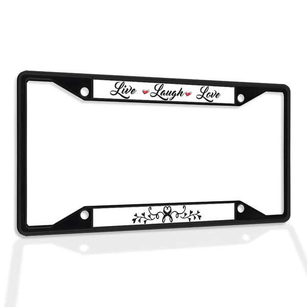Fastasticdeals Metal Insert License Plate Frame Live Laugh Love Weatherproof Car Accessories Black 4 Holes Solid Insert