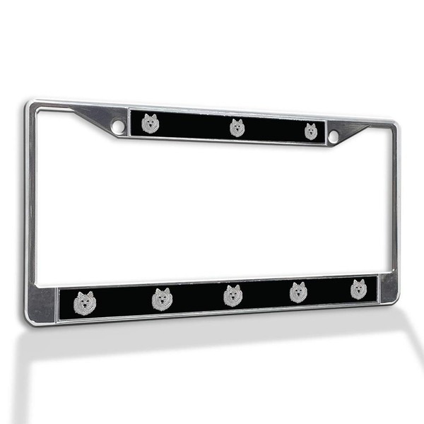 Fastasticdeals Metal Insert License Plate Frame Samoyed Dog C Weatherproof Car Accessories Chrome 2 Holes Solid Insert