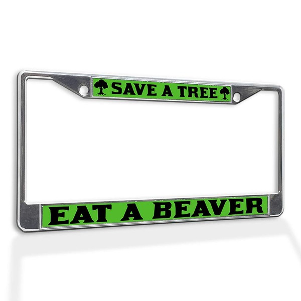 Fastasticdeals Metal Insert License Plate Frame Save A Tree Eat Beaver Weatherproof Car Accessories Chrome 2 Holes Solid Insert
