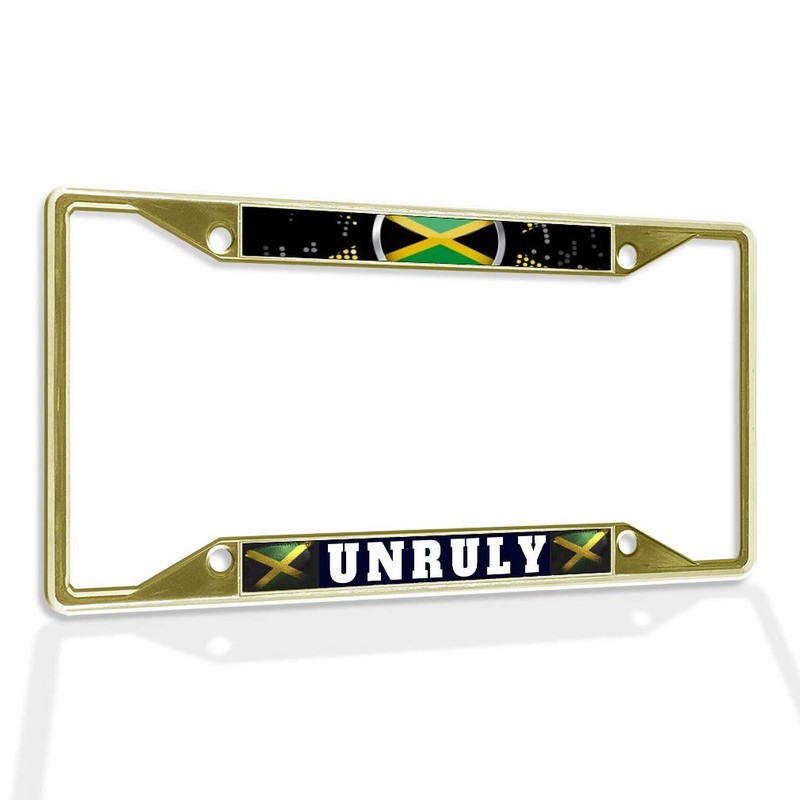 Fastasticdeals Metal Insert License Plate Frame Unruly Jamaican Jamaica A Weatherproof Car Accessories Gold 4 Holes Solid Insert