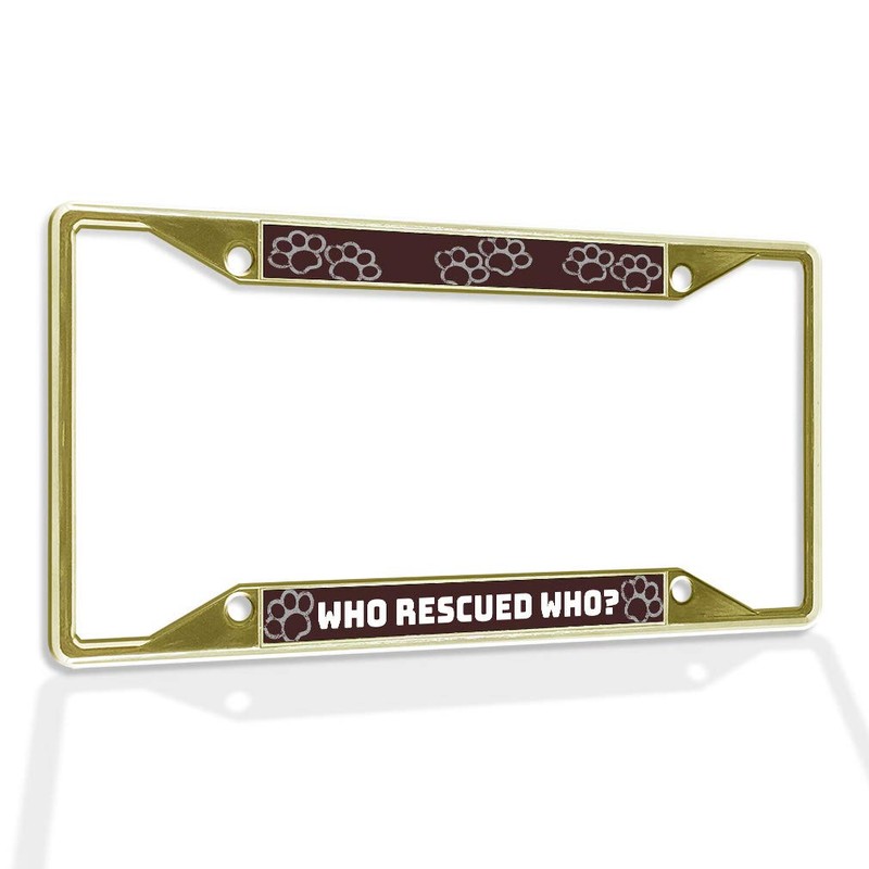 Fastasticdeals Metal Insert License Plate Frame Who Rescued Who Weatherproof Car Accessories Gold 4 Holes Solid Insert