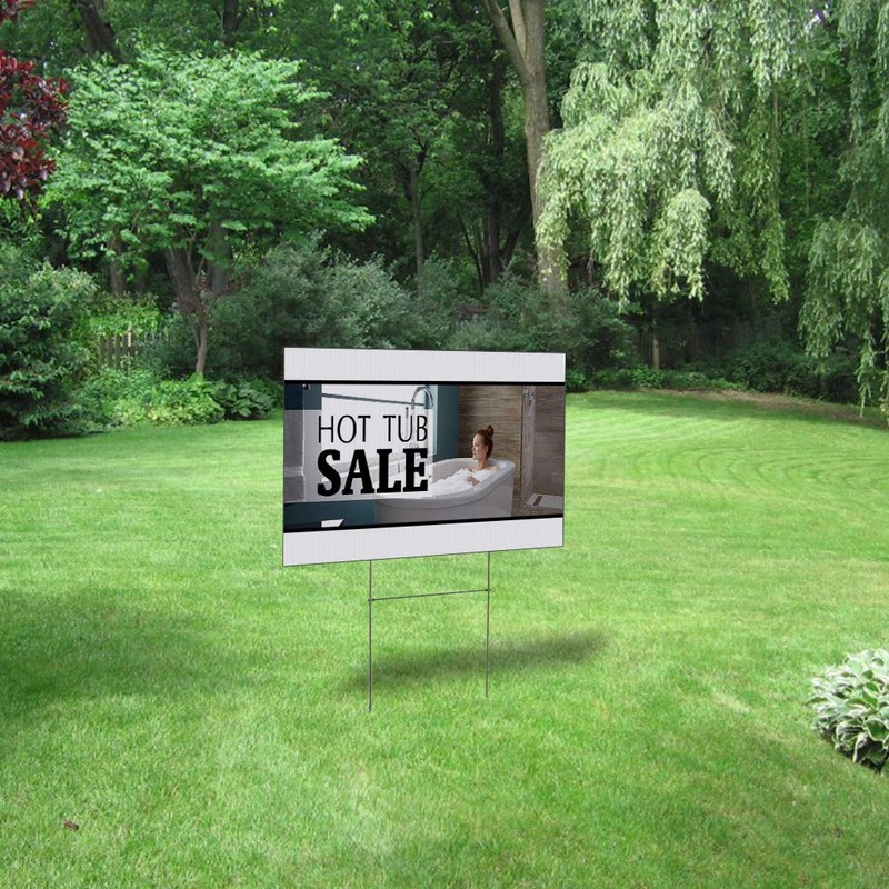 Perfect as: hot yard sign, tubs sign for yard, tub signs spring, sale signs with stake, or women face corrugated plactic sign. We print with high quality inks with vivid colors making sure your advertisement sign is being seen!