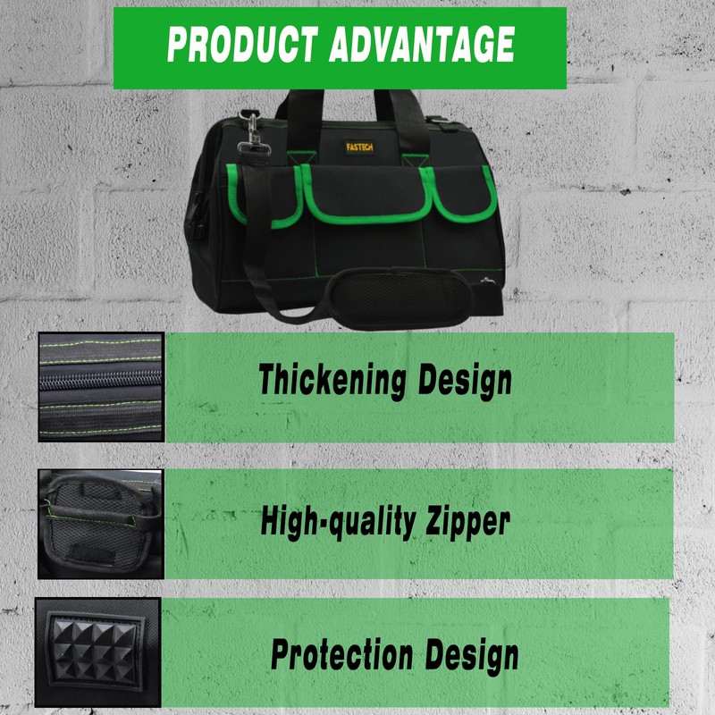 FASTECH 22 Inch Tool Bag, Waterproof Wide Mouth Tool Kit, Heavy Duty Tool Bag Organizer With Shoulder Straps, Tool Storage Package For Men/Women