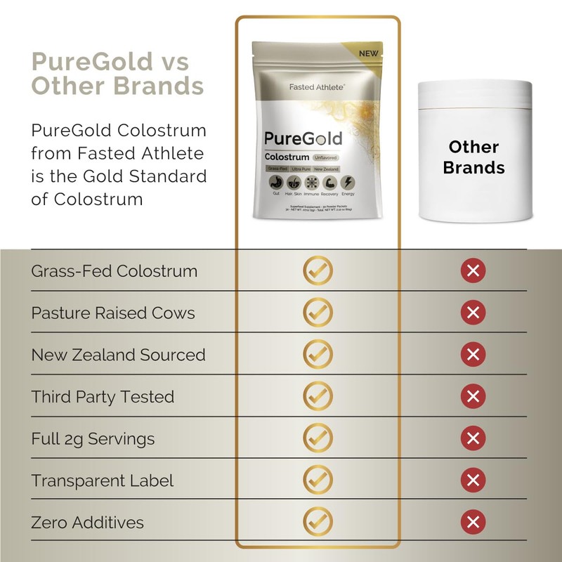 Fasted Athlete Fasted Athlete - PureGold Colostrum | Premium Grass Fed | Supports Gut Health, Skin & Hair, Muscle Recovery, Bloating, Immunity | Colostrum Supplement Powder | Unflavored, 30 Serving Packets