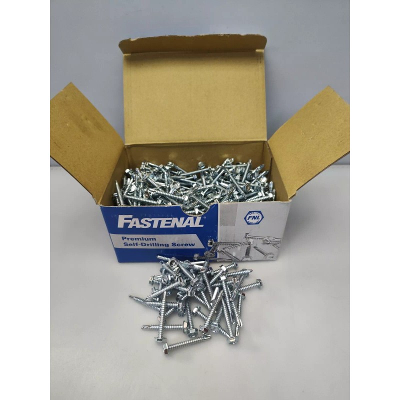 Introducing a set of 500 zinc plated screws in size #10-16 with a length of 1-1/2\". These self-drilling screws have a hex washer head and are made by Fastenal. Perfect for any industrial or hardware use, these screws have a thread size of #10 and a system of measurement in inches. The pack includes 500 screws and is categorized under Business & Industrial, Fasteners & Hardware, and Screws & Bolts. Get your hands on this reliable set of screws for all your construction needs.