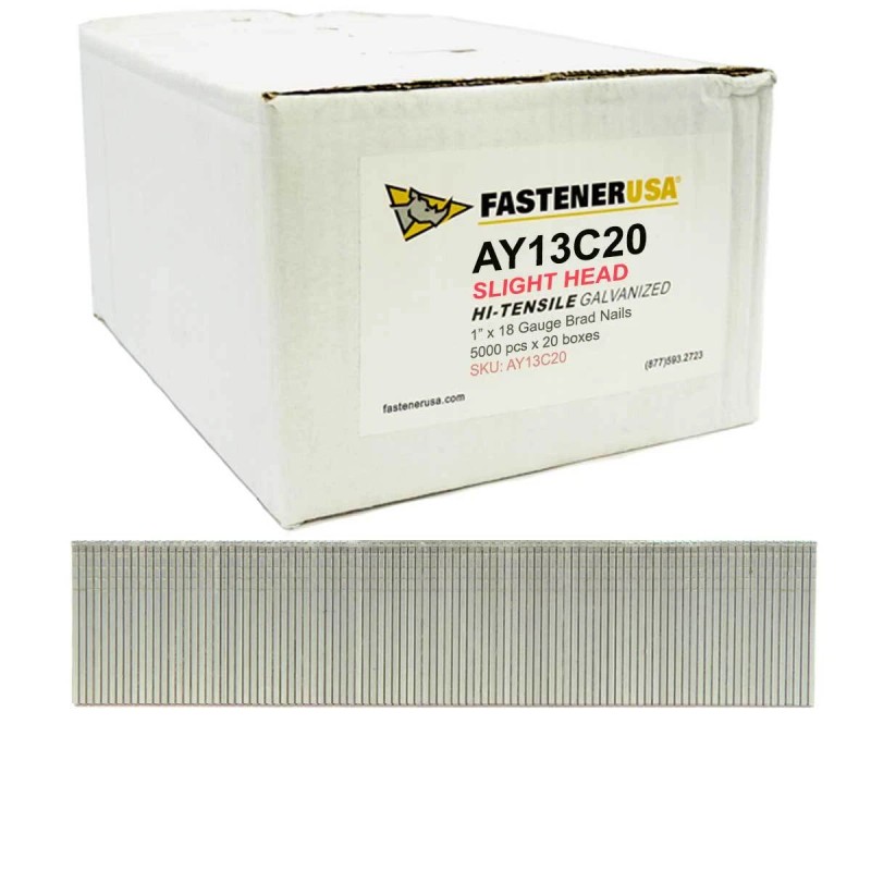 FastenerUSA 1" SLIGHT HEAD BRAD NAILS 18GA GALV 100,000ct | AY13C20