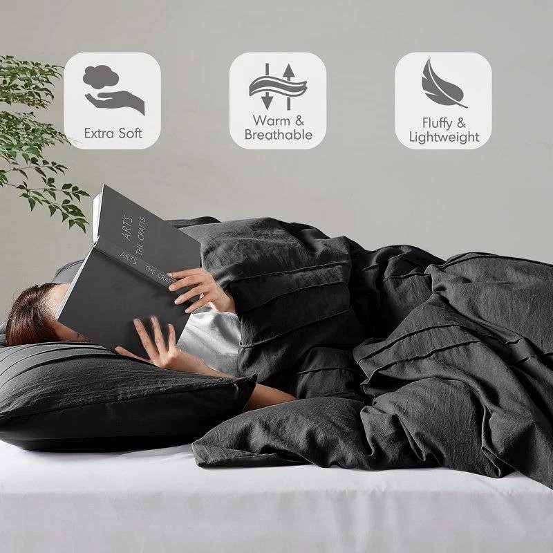 FastFurninshing Twin/Twin XL Pre-Washed Pleated Microfiber Comforter Set in Black