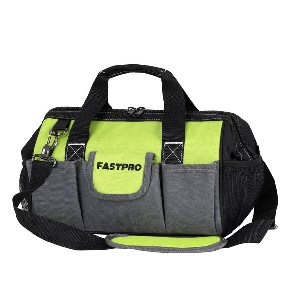 FASTPRO 13-inch Wide Mouth Tool Bag, Multi-pocket Tool Organizer with Adjustable Shoulder Strap