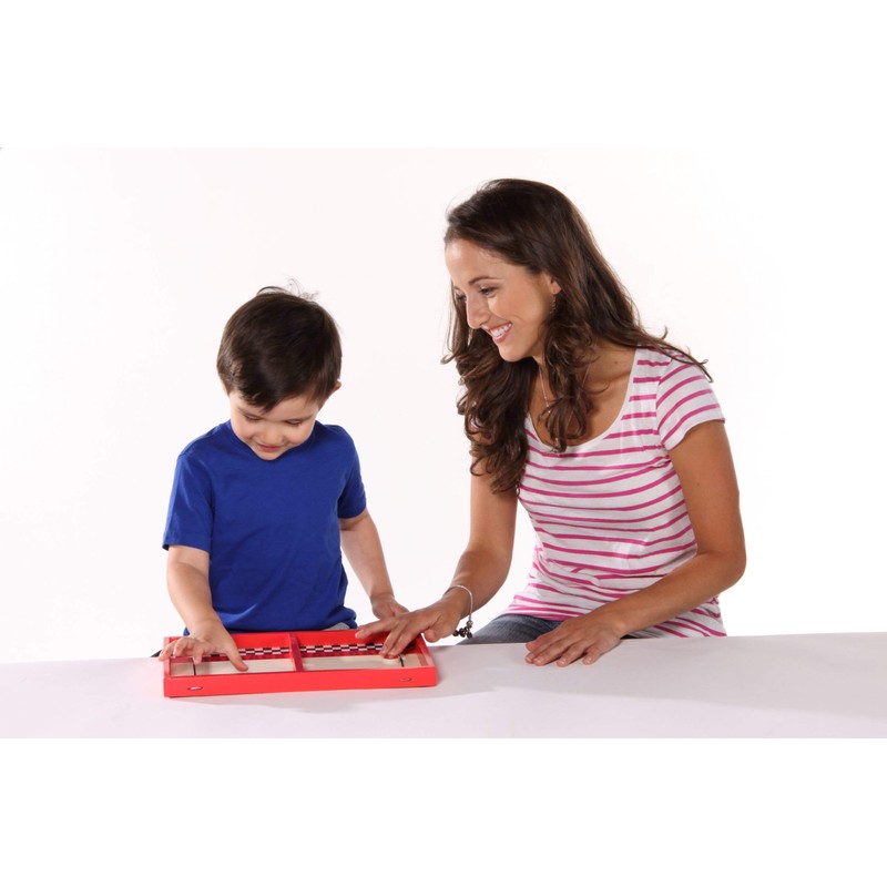 - A wooden tabletop game for 2 players, ages 5 and up.