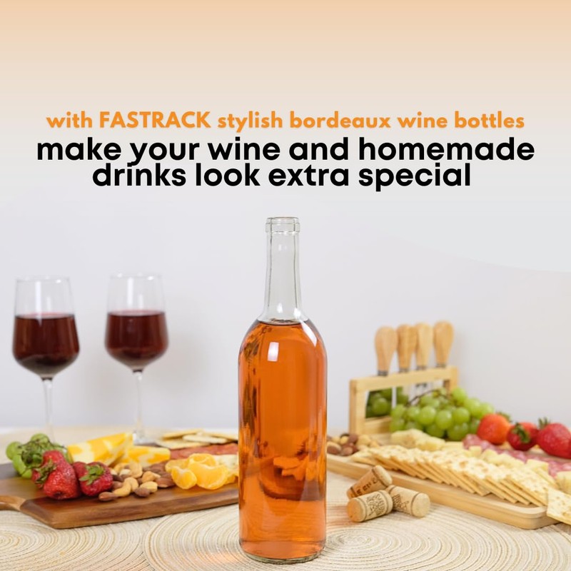 • STYLISH DESIGN: FastRack Bordeaux clear wine bottles will make your wine look extra special when presented in these stylish bottles; another reason to be proud when offering your homemade drinks to friends and families.