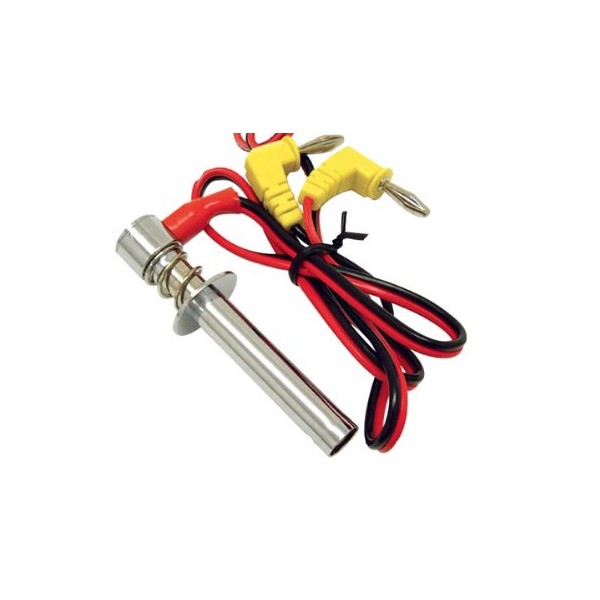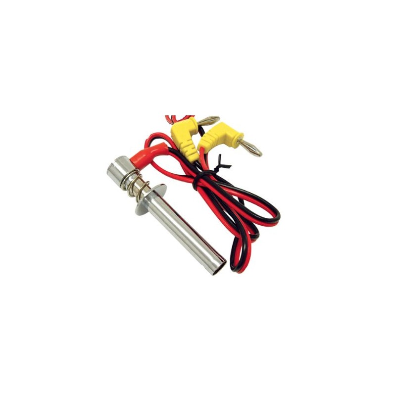 Easy to use, metal, centre spring loaded glow plug clip. Inexpensive and suited for most types of plugs and engines.