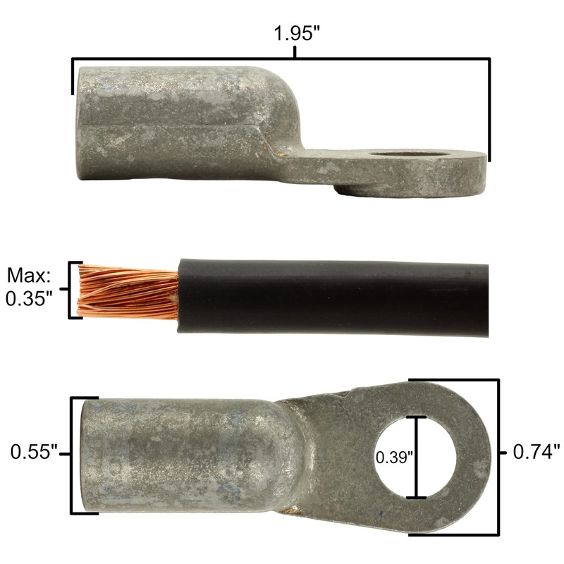 - 2 - 3/8" Lugs for Side Post Batteries or Battery Terminals