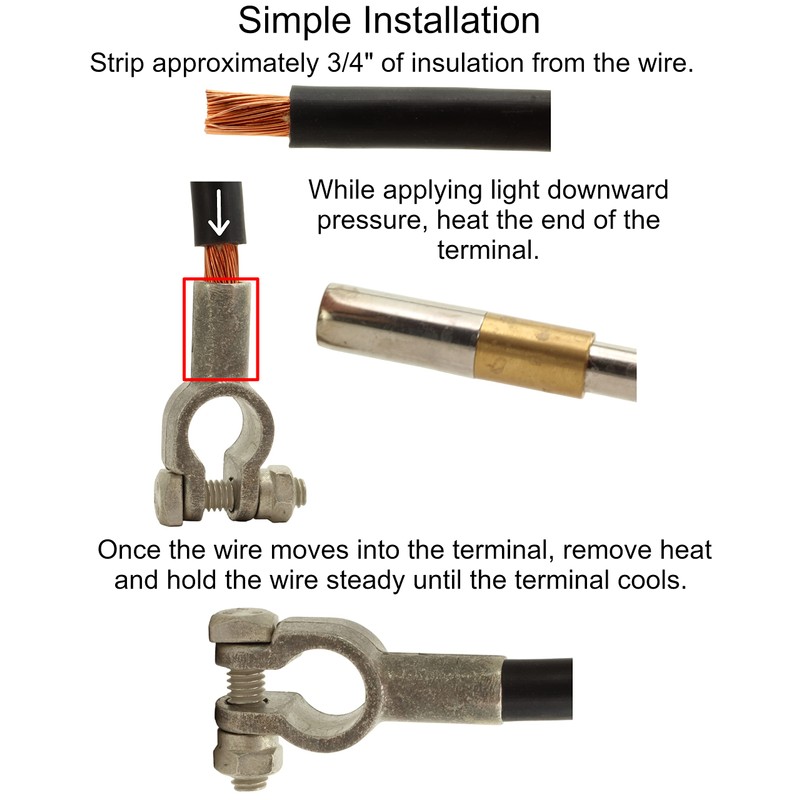 - Install with Simple Tools! Simply Heat the Terminal with a Torch While Applying Pressure to the Wire