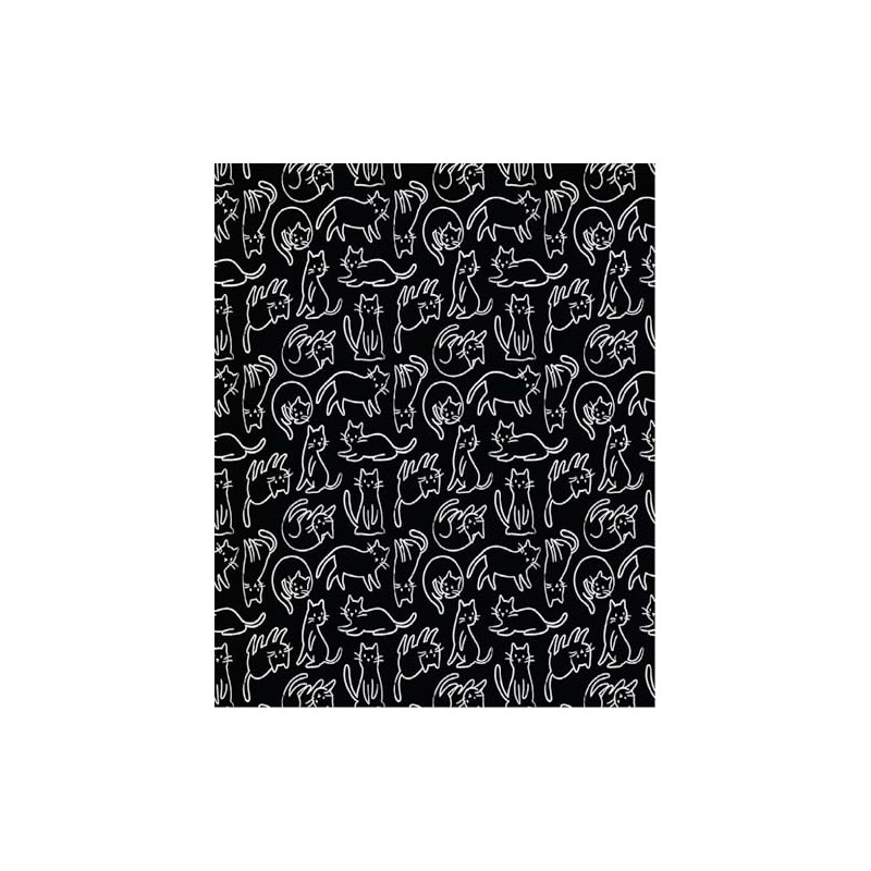 Fat Quarter - Cat Theme Black/White 100% Cotton Fabric ~ Cat Outline on Black Background 18 inch x 21 inch