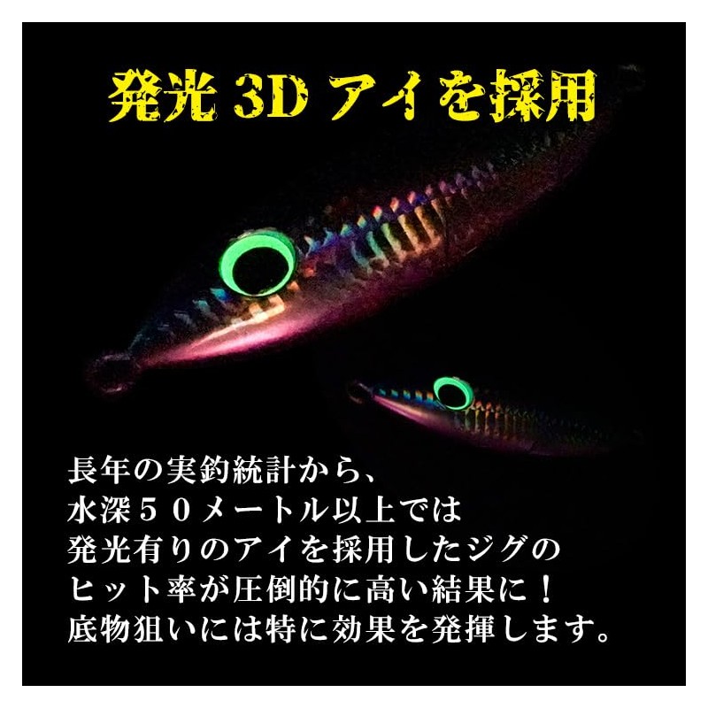 - (Uses Luminous 3D Eyes) According to the years of actual fishing statistics, the jig hitting rate uses luminous eyes at a depth of 164.0 ft (50 m) and above the water depth is overwhelmingly high. Especially effective for bottom aiming. (Covers a variety of targets with a lot of fishing) We carefully select the popular colors from anglers across the country and have a lineup that will not lose its shape