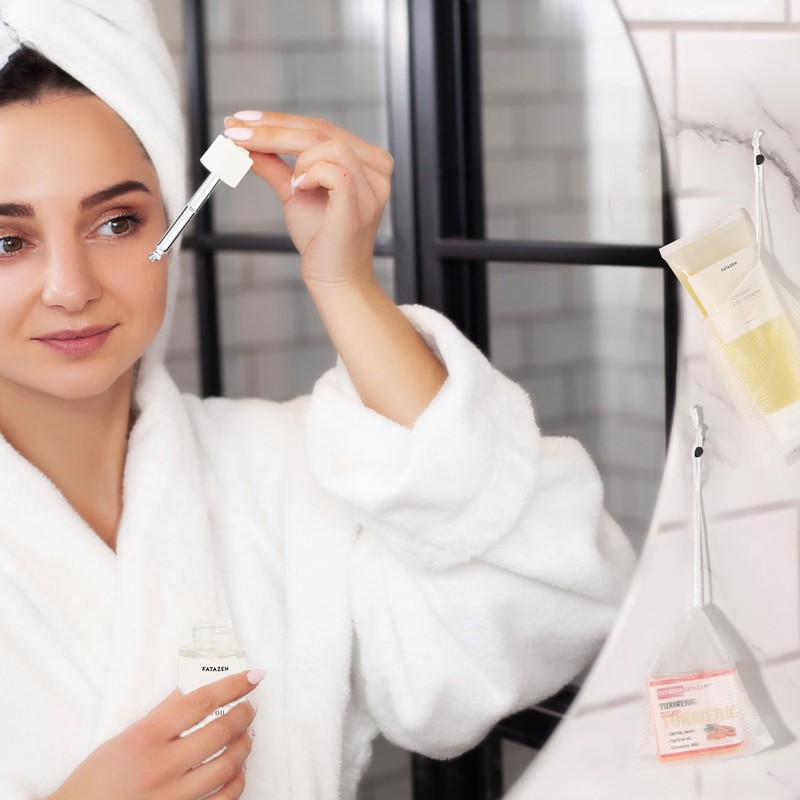 FATAZEN Oil Control Turmeric Skin Care Set | Turmeric Trio with Gel Cleanser + Face Oil + Soap Bar & 2 Bubble Nets, Pore Clarifying, Soothing, Brightening, Daily Routine for Oily Acne Sensitive Skin