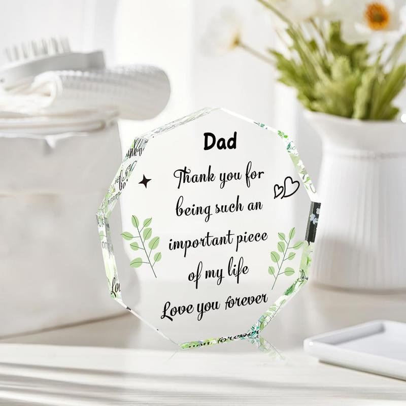Exccelent Service: An ornament engraved with "Dad Thank you for being such an important of my life. Love you forever" makes a daddy gift. The ornament is packaged in a box to protect dad gifts from being easily damaged in transit. If there is any question about our fathers gifts, we will try our to solve it for you. cool gifts for dad gifts for fathers day, cool gifts for dads, happy fathers day.