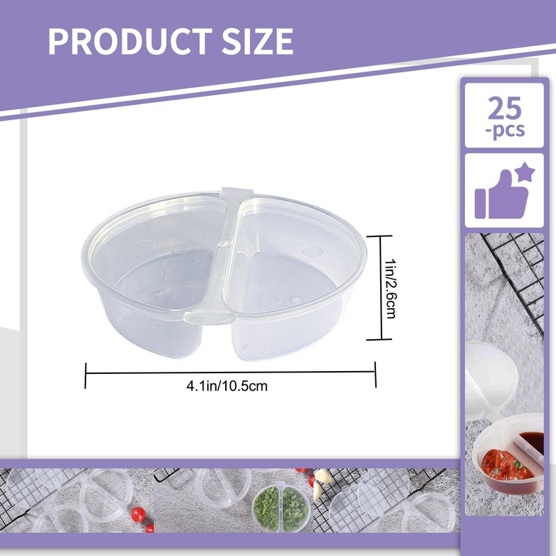 - 【What You Will Receive】 You will receive 25 pieces of double condiment containers measuring 4.1" x 3.3" x 1" (10.5 cm x 8.4 cm x 2.6 cm). They provide a good supply for your family or dinner party, and make sure you have right containers for sauces.