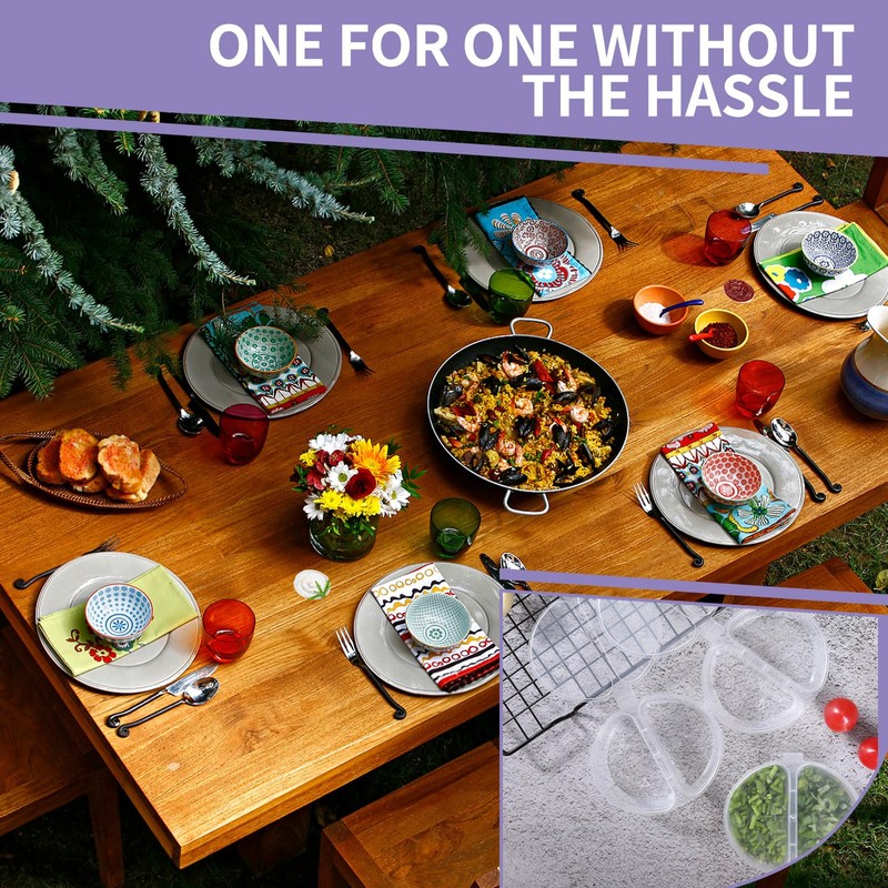✿Space Saving: These double compartment condiment containers with lids are very compact and can be stacked on top of each other for easy collection. They take up little space in kitchen or pantry and are easy to access.
