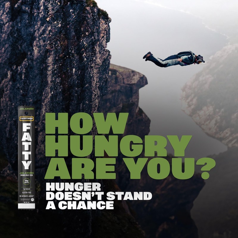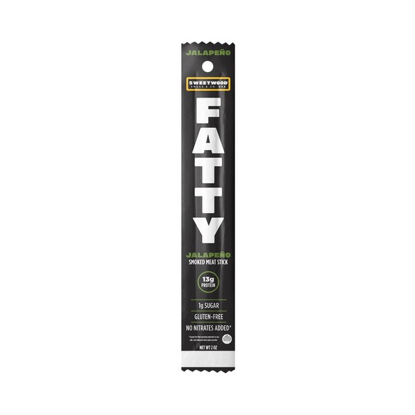 FATTY Grass-Fed Beef Smoked Meat Sticks, Jalapeno Flavor, 13g Protein Per Stick, 2 oz.