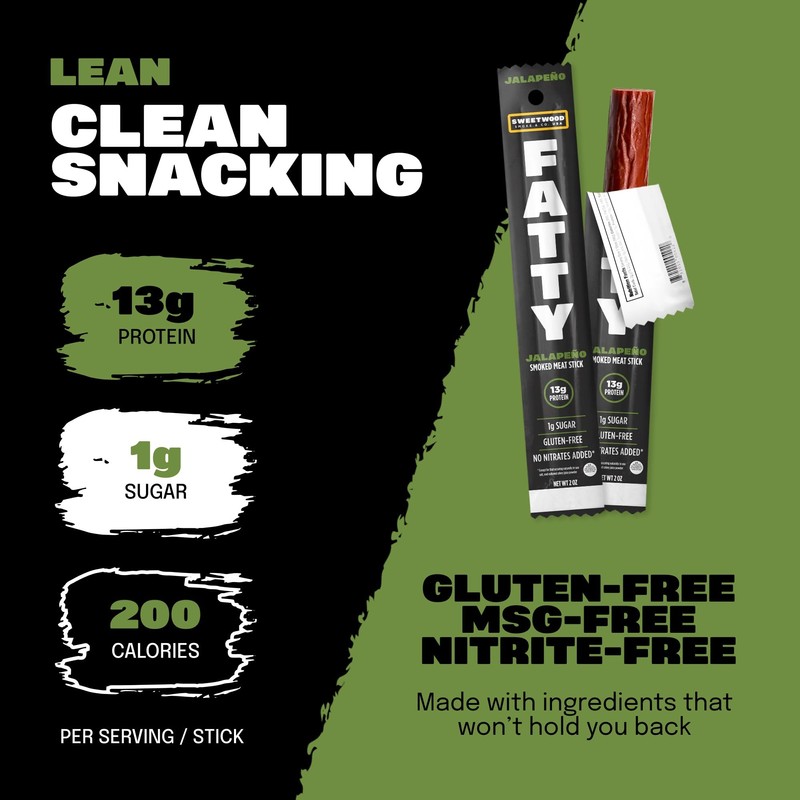 FATTY Grass-Fed Beef Smoked Meat Sticks, Jalapeno Flavor, 13g Protein Per Stick, 2 oz.