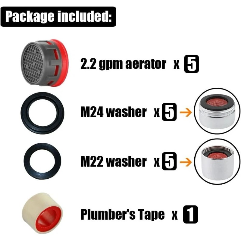 • 【Smooth Flowing Faucet Aerator】 gpm max at 60 psi ( 【TWO BONUSES】 M22 M24 washers & Plumber's Tape