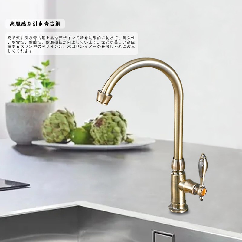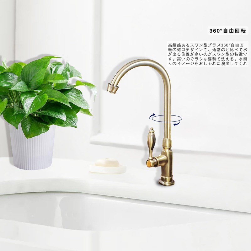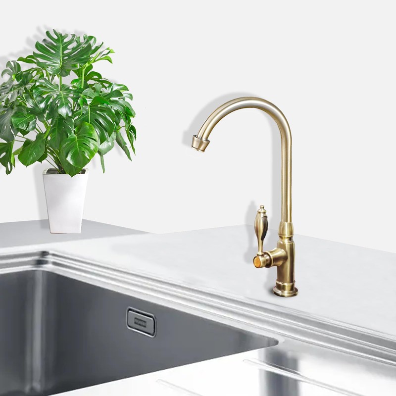Faucet Kitchen Lavatory Antique Single Faucet 360° Rotation Hand Wash Bowl Long Faucet Gooseneck Swan Faucet Retro Single Lever Lavatory (Golden)